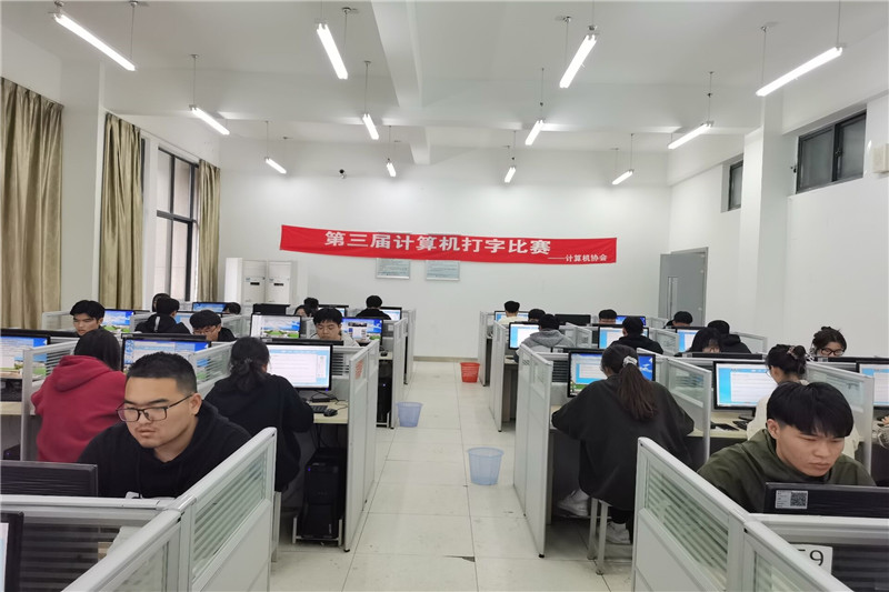 自比赛报名启动时就得到了全校学生的积极响应,本次比赛在新芜和文津校区同时进行,比赛前,计算机协会的负责人先为参赛选手说明比赛的得分标准以及注意事项,评分标准为打字速率的快慢以及准确率,最终分数是打字速度与准确率的相加,具体分数将会由专用打字比赛软件服务端统计得出;为保证比赛的公平性和严谨性,此次比赛的题目是经过软件随机抽取而成;比赛前5分钟会让参赛选手们先熟悉键盘,进行5分钟的试打,有问题可举手提出;教室内,充满着紧张的氛围和敲击键盘的声音,参赛选手们的手指灵活地在键盘中飞快的跳动着,目光紧盯着屏幕,非常认真、仔细的完成任务。